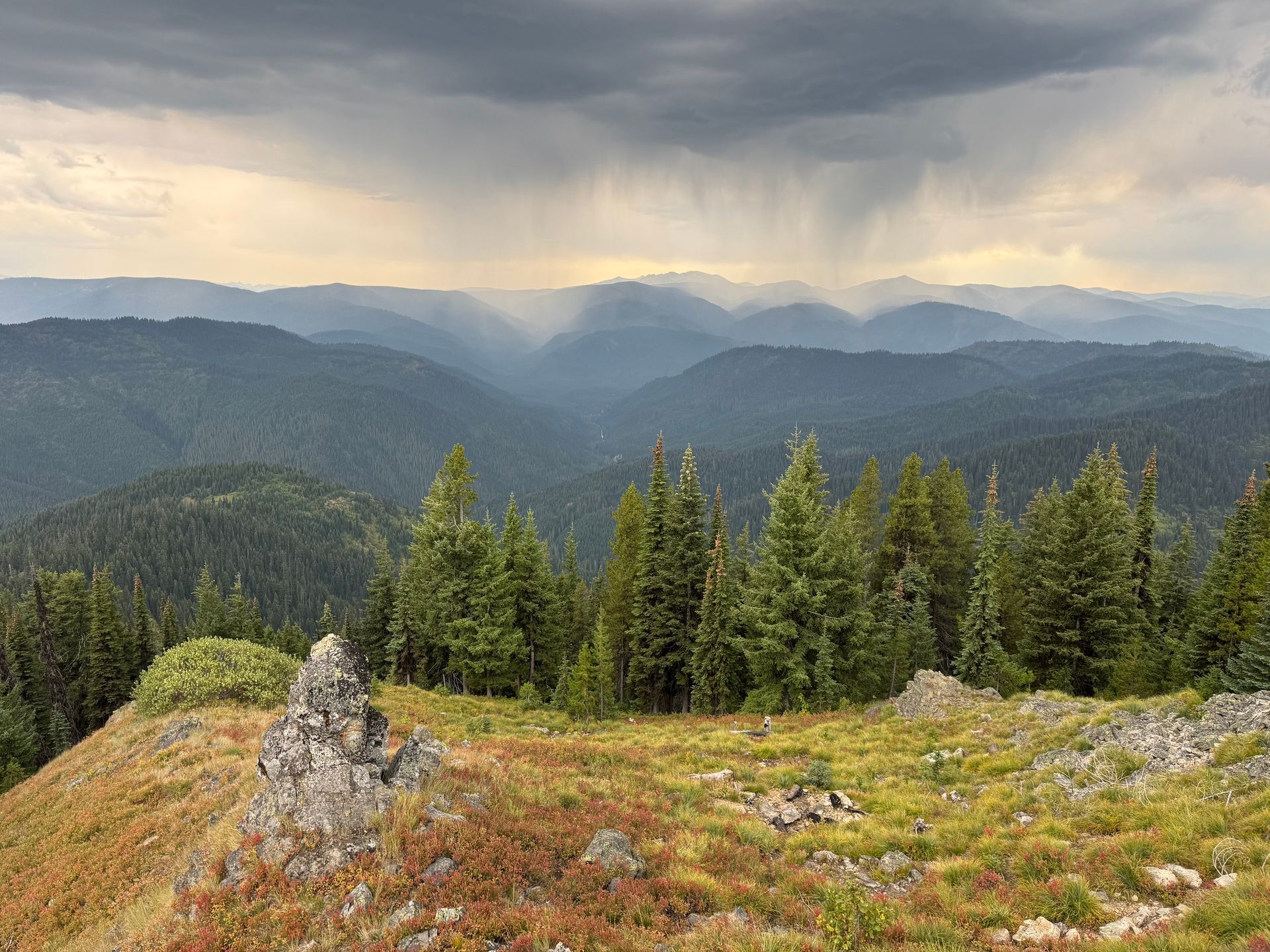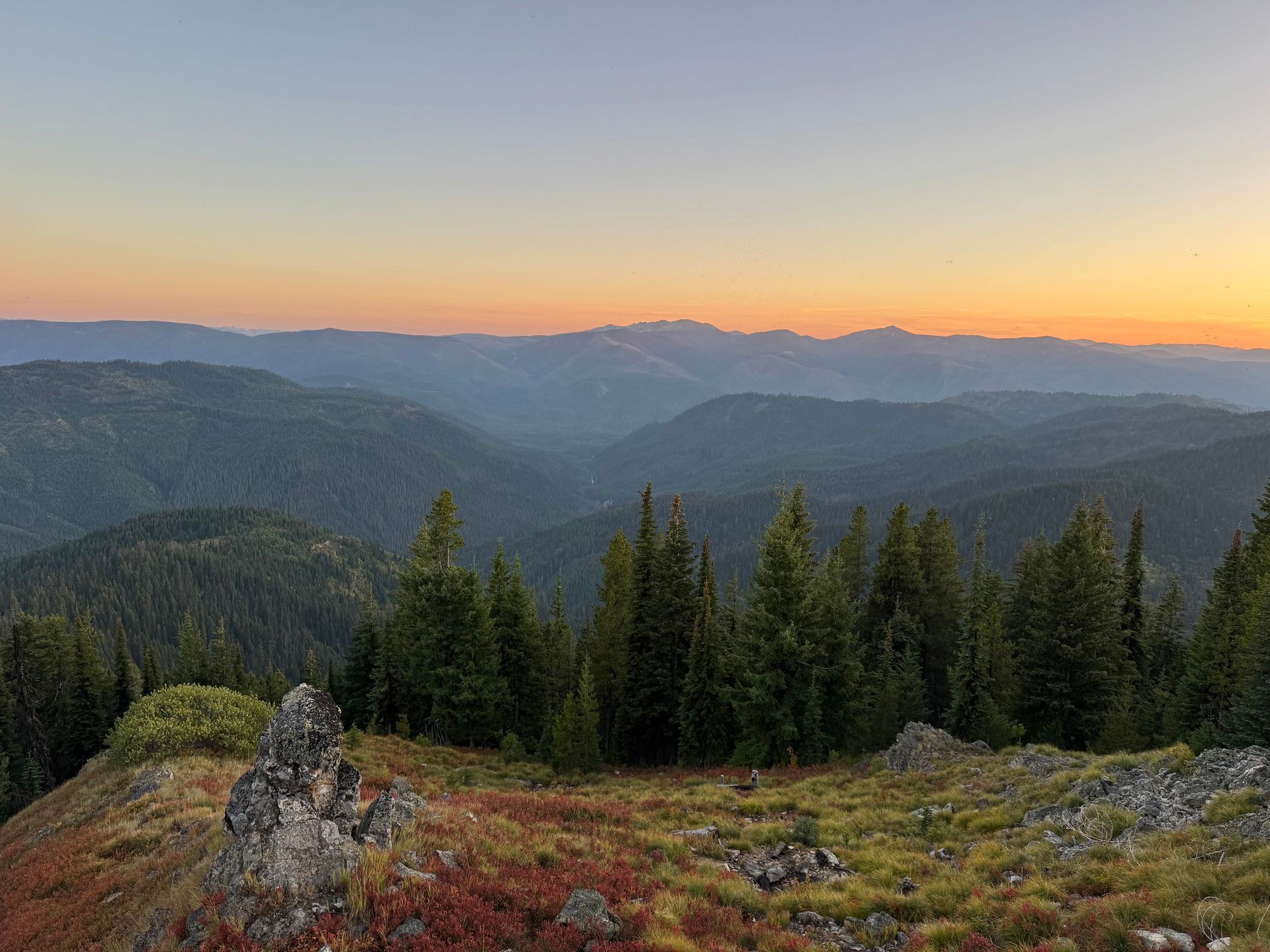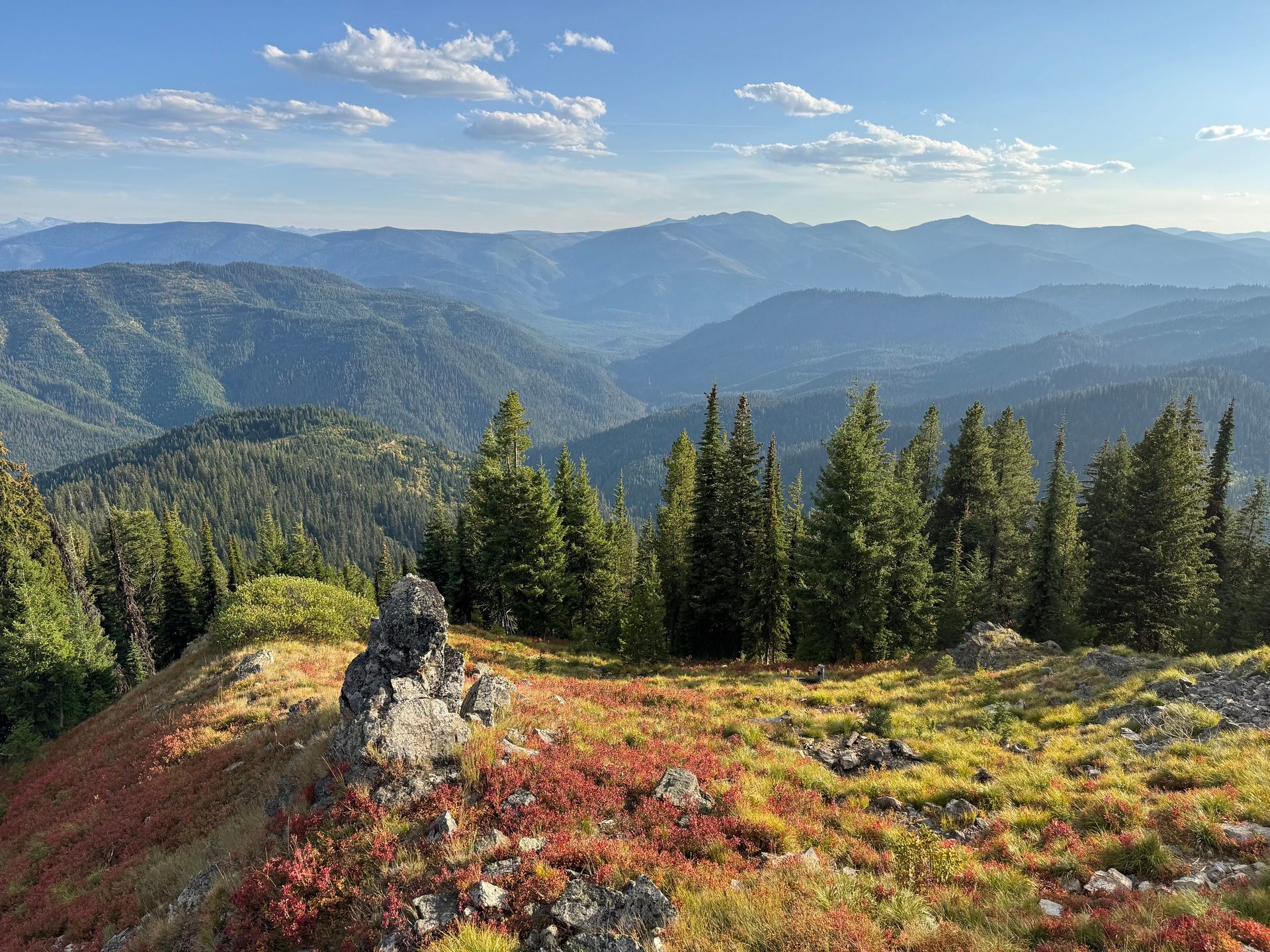 And then the reveal. The rain finally stops. The fog dissipates. And it feels like the world has been born anew. Before me is an azure sky with the bright sun blazing. The air is crisp and clean. Gone is the smoke that’s choked the forest for weeks, blurring all the ridges together into a tawny, nebulous mass. I can see the mountains again, stretching as far as the eye can see. I can even make out the individual trees growing on their flanks. After being socked in with smoke for weeks, it feels like my eyes have been upgraded to 4k. And that’s just the start. The forest knows winter is coming and starts to prepare. The huckleberry leaves blush a deep crimson while their bushy counterparts glow gold. Pikas scurry around with mouthfuls of grass to sustain them through the cold. Elk bugles echo through the valleys…